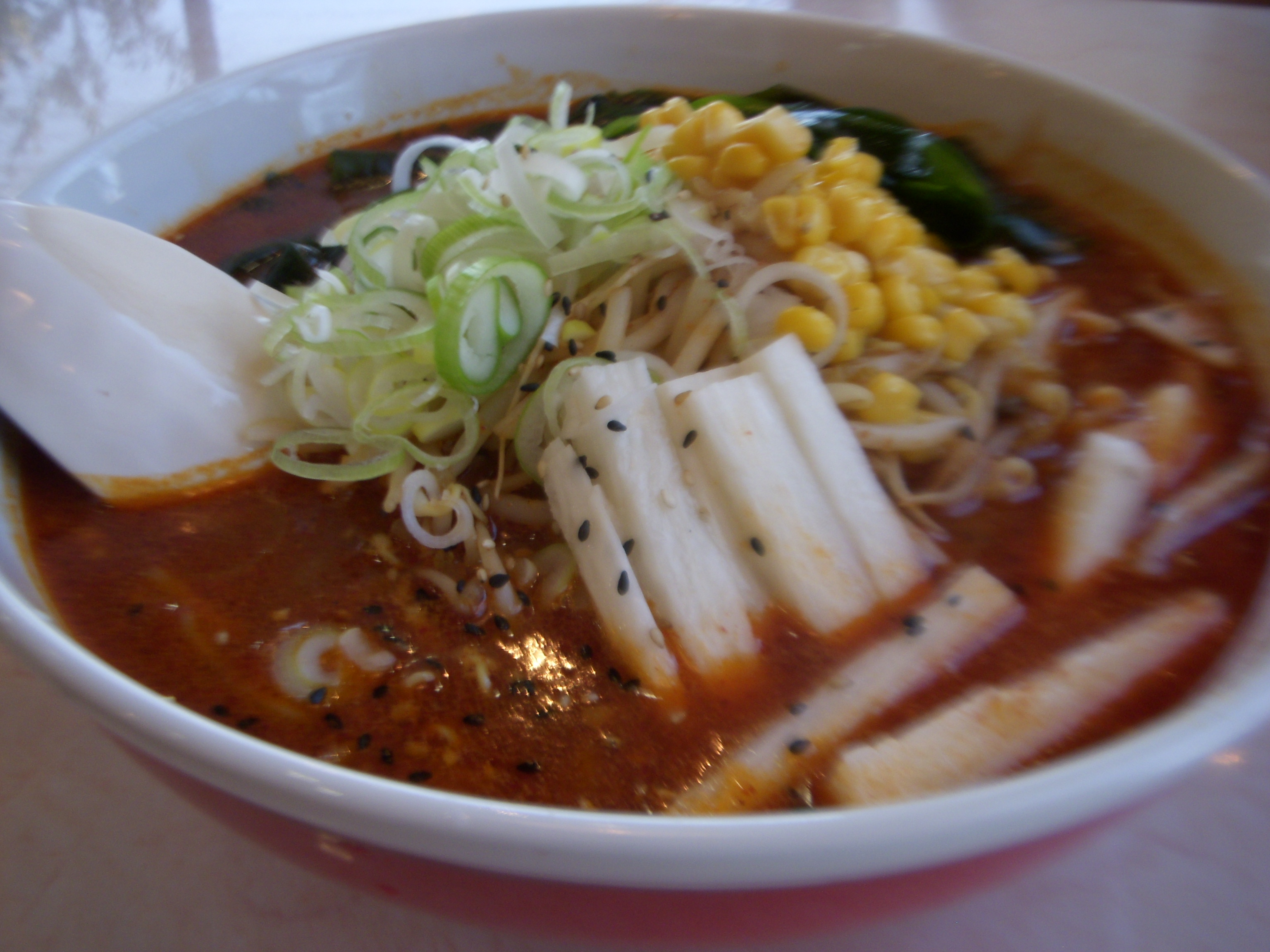 “辛さで逆上、胃腸を大切に”という但し書きにドキドキしながらスープを啜りました。辛い辛い天国のタイに長逗留していた頃は、行く先々で「あなた本当に日本人?」と言われるくらい、辛いものウエルカムな私にとっては、もっと辛くてもいいじゃん!レベルかな~。なので、ラーメンには珍しい長芋のシャキシャキ感を楽しみながら、一気に完食